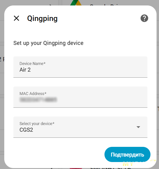 Добавляется очень просто. На самом устройстве выбирается сопряжение с Qingping+ и на дисплее появляется код, который нужно ввести в приложении.