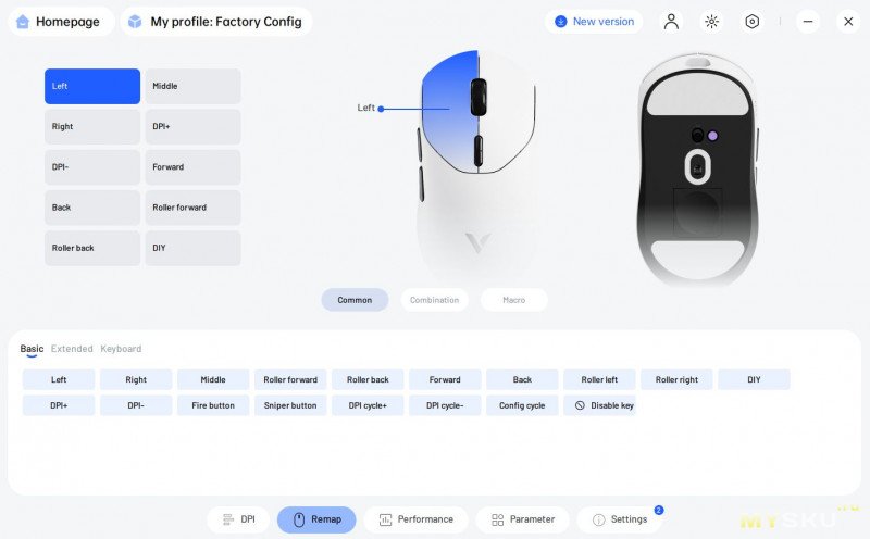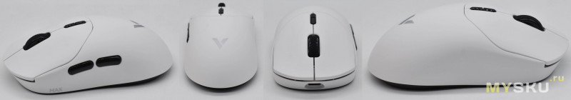Скользит VT2 MAX великолепно, три тефлоновых накладки, причем одна вокруг окна сенсора, этому способствуют. Снизу еще выключатель и дополнительная настраиваемая кнопка.