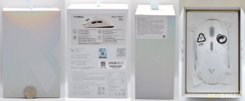 В обзоре мышь будет в белоснежном белом одеянии.Коммерческая упаковка (информация на русском языке на наклейке):