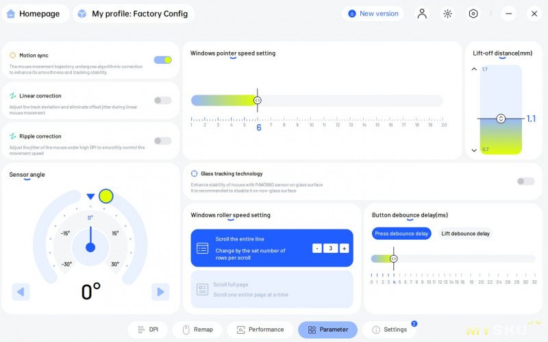 Как видим настроек у мыши достаточно.Сенсор (до 30 000 DPI, скорость отслеживания 750 IPS, ускорение до 50 G) дает точное позиционирование курсора (без срывов), высокая частота опроса — минимальный отклик и плавность движений. А малая масса манипулятора снижает усталость при длительном использовании.
