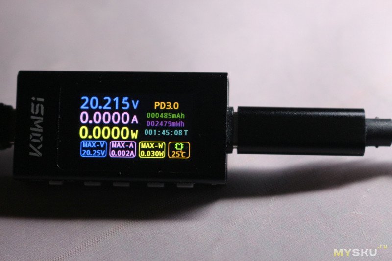 При подключении триггера к источнику с протоколом PD получаем обещанные 20 В.