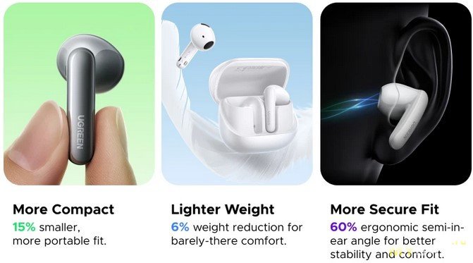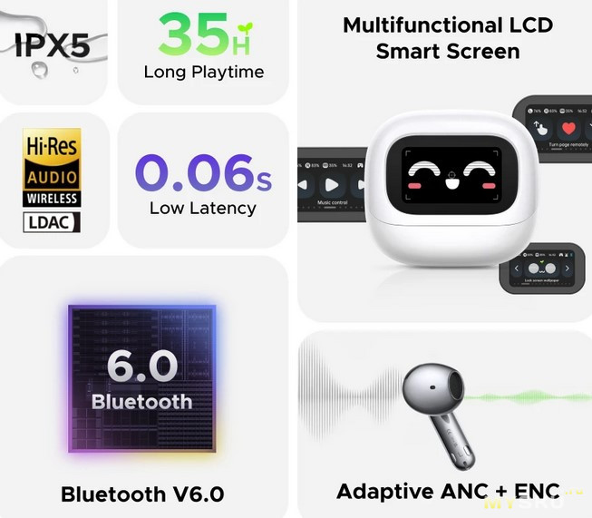 Модель: UGREEN LightBuds Magic WS216 Wireless Headphones Semi-open Hi-Res Audio Adaptive Noise Cancelling With LCD Full Color Smart Screen