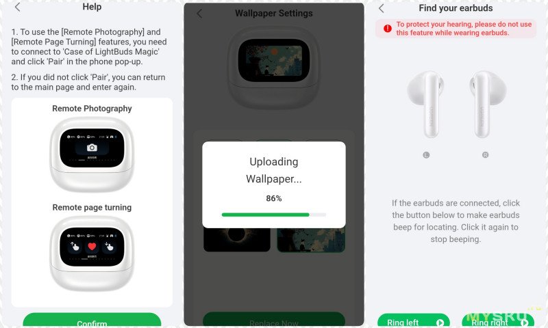 — очень полезная функция поиска наушника, вначале пищит тихо и далее повышает громкость, главное чтобы аккумулятор не был посажен в ноль;