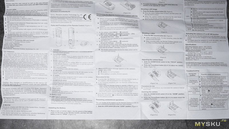 Из ценного: из инструкции узнал про возможность перепрошивки пульта через компьютер и порядок действий для сопряжения его с камерой.