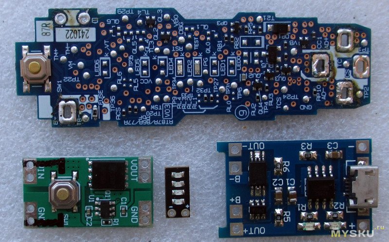 В бритву вместо родной платы было решено установить 3 модуля — кнопки, малогабаритный индикатор заряда ( https://aliexpress.ru/item/1005008896026555.html ), подключенный после ее выхода, и типовая платка заряда лития на tp4056 в варианте с bms.