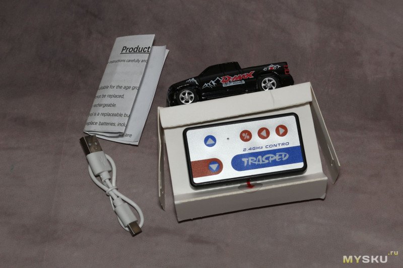 Вместе с пультом она винтами дополнительно закреплена на картонной подложке — чтоб точно раньше времени никуда не уехала. Также в коробке был зарядный кабель и инструкция