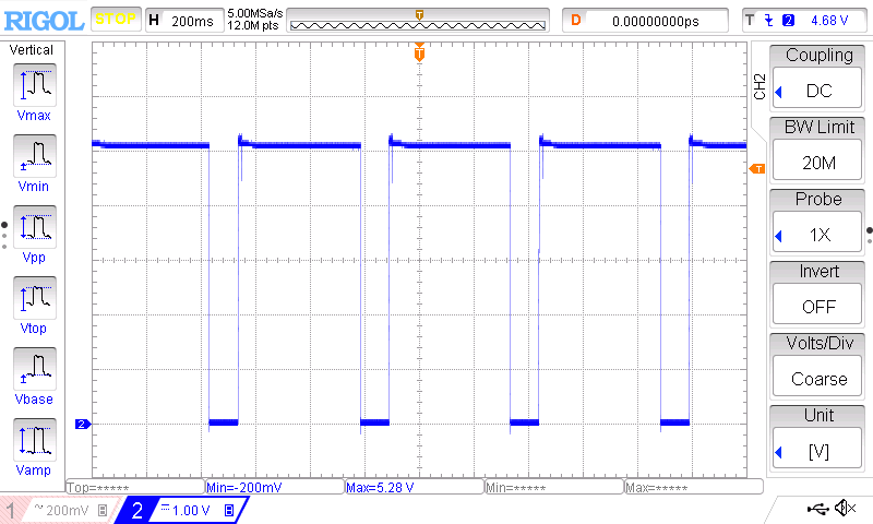 Те же токи на медленной развёртке, низкочастотные составляющие в шуме отсутствуют: