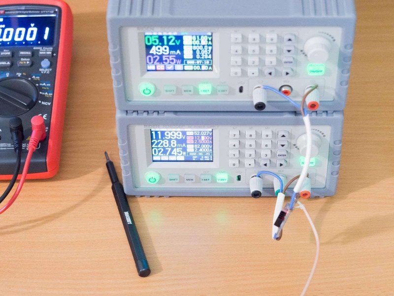 Для тестирования собрал стенд из блока питания RD6006P и электронной нагрузки:
