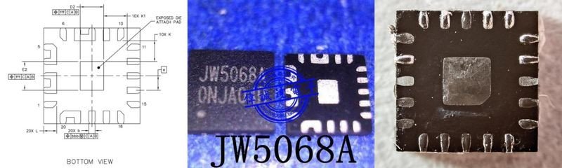 По информации из интернетов, он построен на микросхеме JW5068A, вполне вероятно, что здесь используется тот же чип (или его аналог):