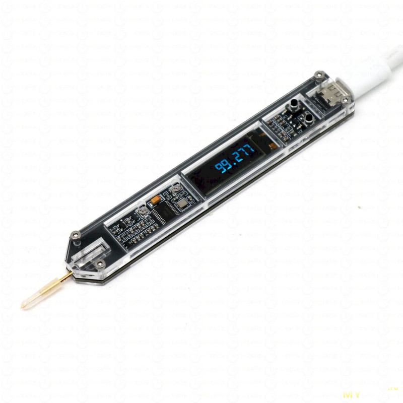 А с аккумулятором — размеры прибора 138х18х9 мм вместе с иглой, и там просто некуда его засунуть. В этом приборе даже нет конденсаторов развязки по питанию! Вот его фотография:
