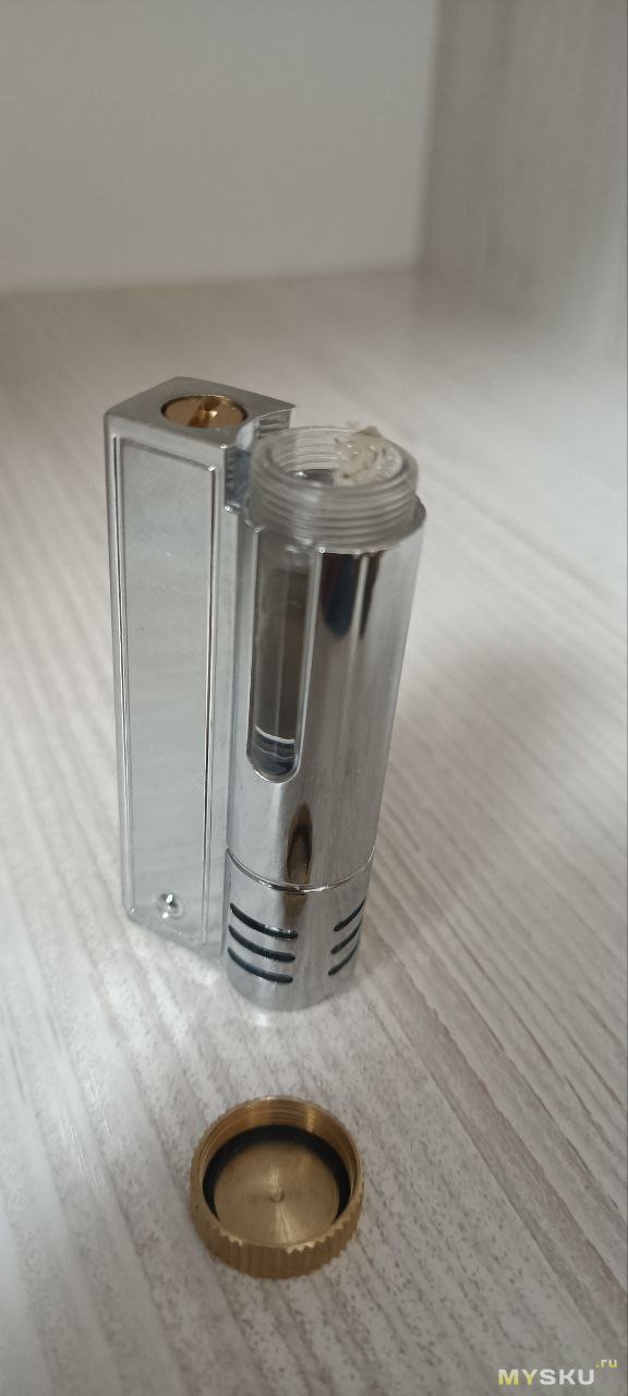 Вывод: не могу рекомендовать данную зажигалку, вымученная конструкция стремительно испаряющая топливо. Отдельная недоработка — латунная крышка, навинчиваемая на пластик рано или поздно слижет резьбу, если всё-таки вы решите её использовать.