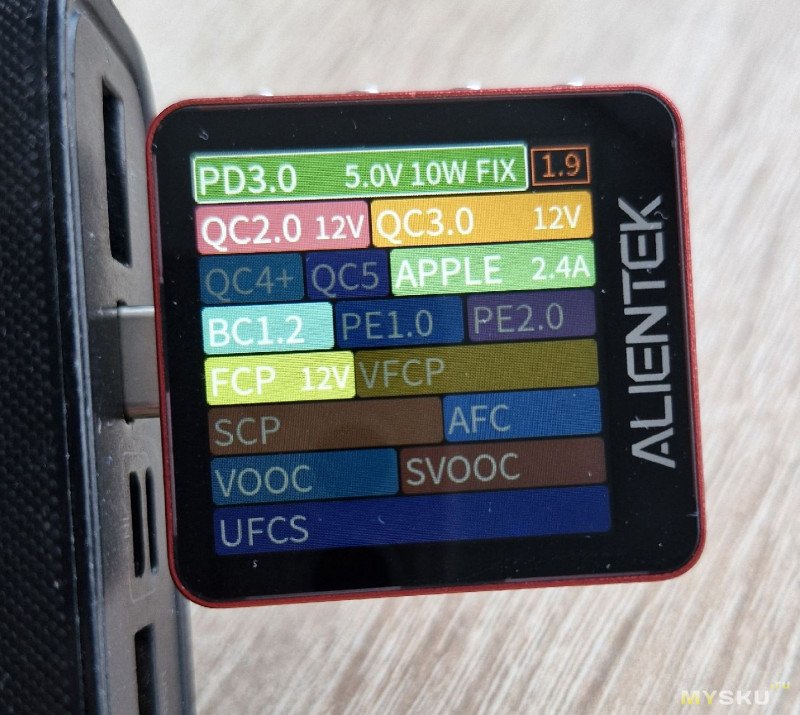 Красиво у ALIENTEK C2 оформлен тест протоколов быстрой зарядки: