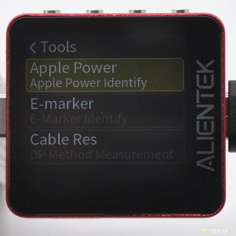 В инструментах тут: идентификация Apple-зарядки, чтение E-Marker чипа кабеля и измерение сопротивления кабеля с нагрузкой.