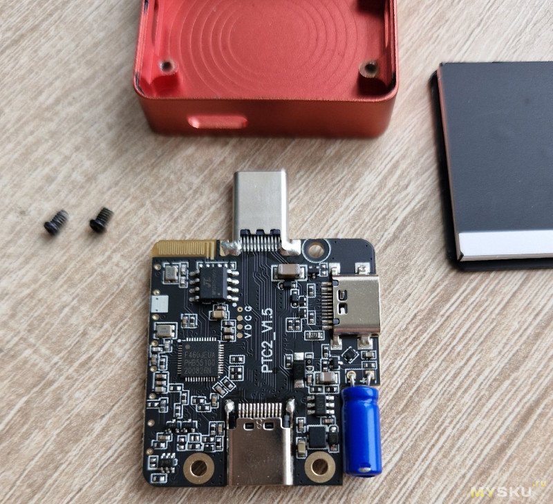 Корпус полностью алюминиевый, коробчатый, сверху вклеен дисплей. Красный у Pro версии. Кнопочки (4 шт.) тоже металлические. Вход-выход Type-С (причем стандарт 3.0), боковой порт для внешнего питания и подключения к ПК.