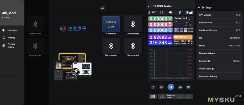 USB-тестер ALIENTEK C2 Pro: PD3.2, Bluetooth, пульсации, ток 7А
