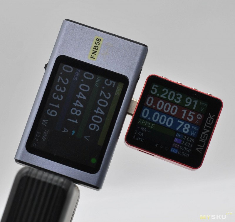 FNB58 показывает столько же.Для тестов потребления тока современных устройств такой компактный тестер удобнее: