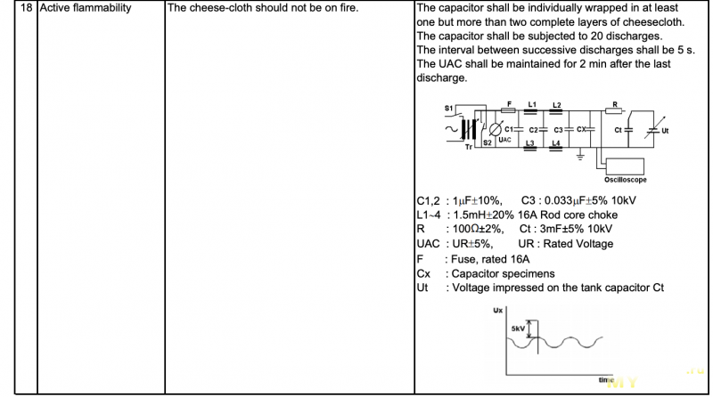 Стандарт IEC 60384-14 ссылается на IEC 60384-1, в котором описана схема и методика испытаний электрической прочности.