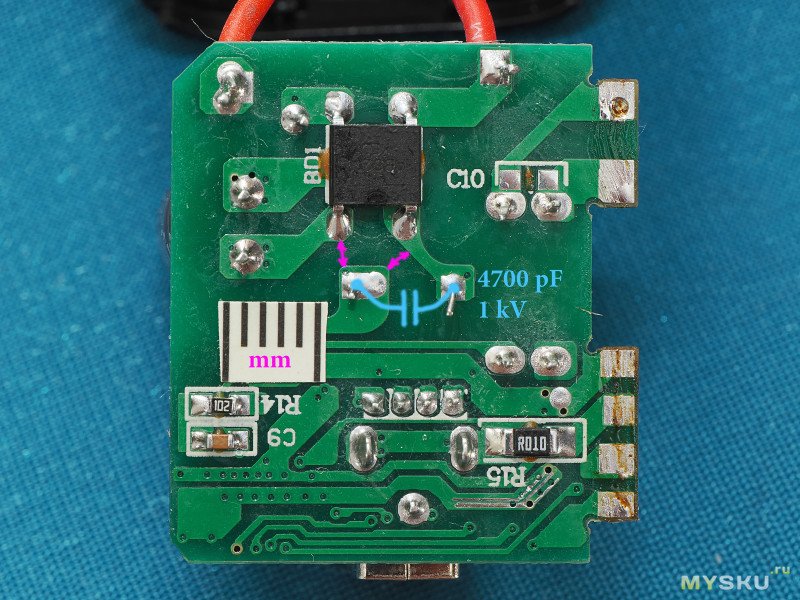 Вывод: китайские БП вскрывать обязательно. Y-конденсатор (даже правильный) лучше выпаять.
