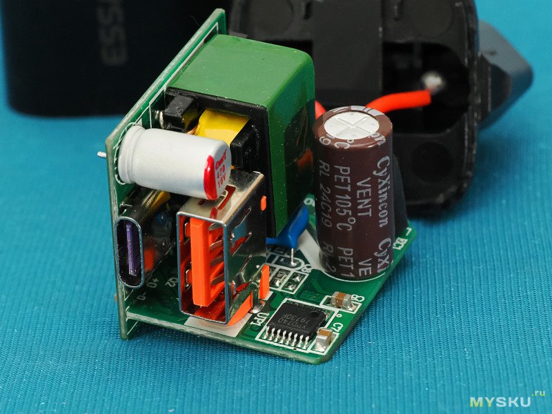 Я его вскрывал, но там двухплатная конструкция, Y-конденсатор с ходу не виден. Нужно распаивать. Судя по его размеру — он скорее китайский высоковоьтный. Может соберусь еще добраться. На волне интереса к теме. БП совершенно нормальный, чего на нем написано — выдает. С «зелеными» «приколами» — типа сам отключается без нагрузки. с пульсациями тож все норм. Два типа разъемов на таком «малыше» — приятный бонус.