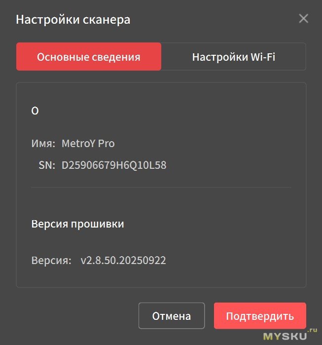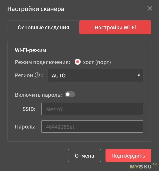 Если подать питание не подключая кабель в разъем USB, активируется точка доступа сканера. По умолчанию пароля нет, так что достаточно просто подключиться к появившейся WiFi сети с именем «MetroY Pro».
