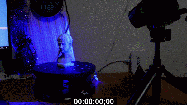 Вот, например, комплектная статуэтка. Я снял её по кругу с трех ракурсов, чтобы захватить макушку и подбородок, уложившись в минуту. Можно было и за два подхода обойтись, но лишняя осторожность не помешает.