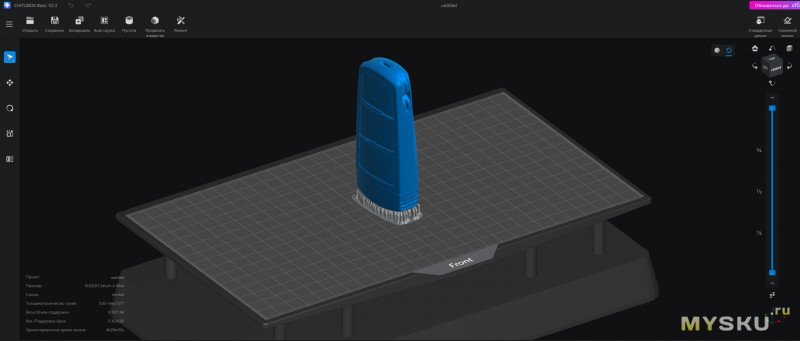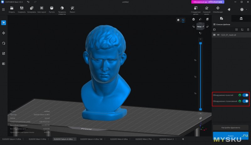 Полученный STL файл можно открывать в слайсере. Chitubox загрузил модель без проблем — ни дыр, ни пересечений.