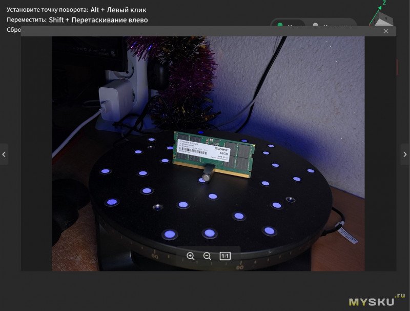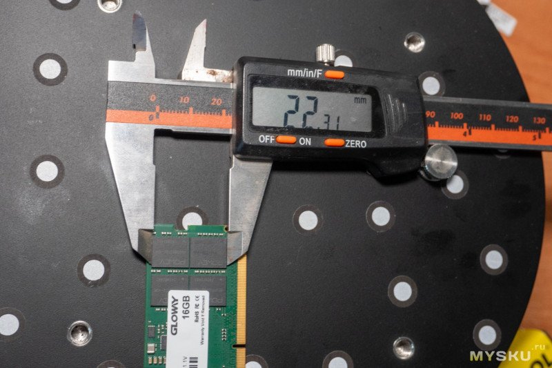 Оперативную память сканировал в режиме динамической подсветки. Расстояние между разъемами оперативной памяти у оригинала 22.31 мм, у модели 22.33 мм. Погрешность может быть чуть выше, т.к. показания штангенциркуля не эталонны, но все равно неплохо.