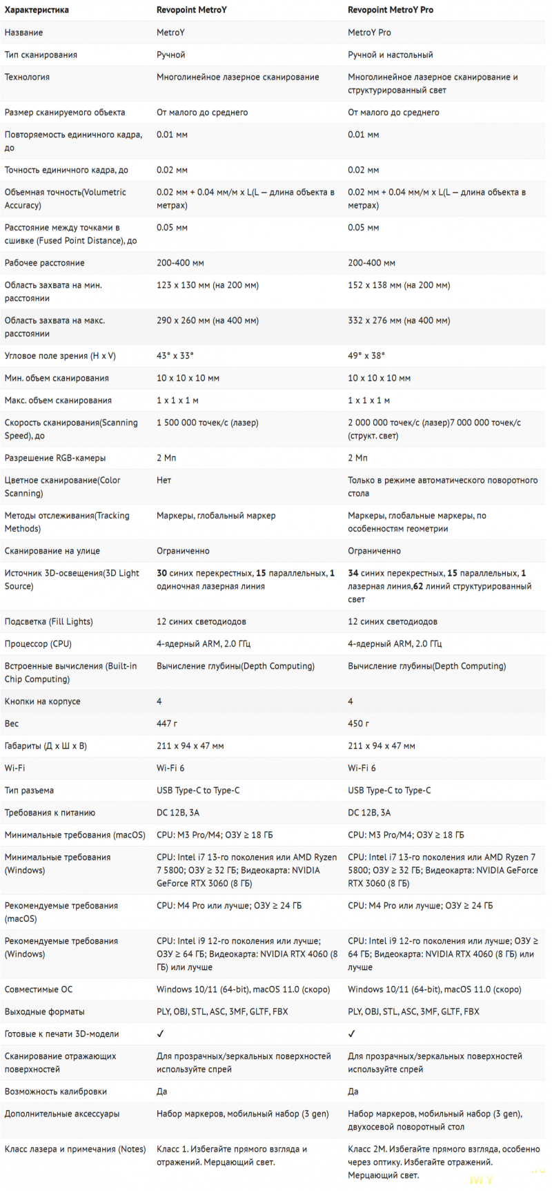 В обзоре показана модель MetroY Pro, в базовой версии нет режима со структурированным светом и 30 перекрестных лазерных линии вместо 34, но она стоит немного дешевле.