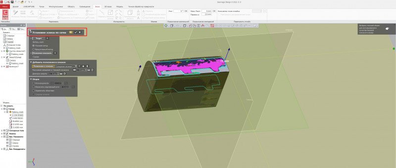Следующий важный шаг, это построение сетки. Здесь минимальное расстояние между точками привязки можно выставить всего 0.03мм.
