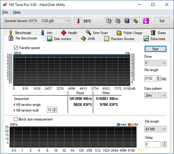 копирование больших файлов на, с умолчательно отключенным и включенным кешированием записи — 430 и 470MB/s:![]() | ![]() |