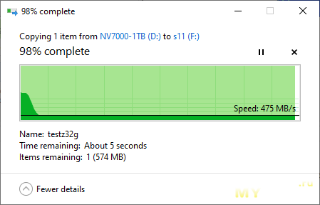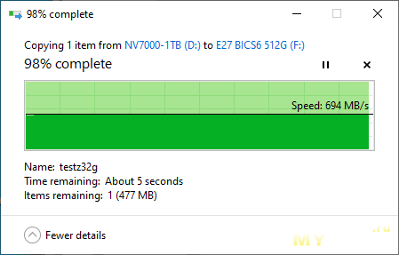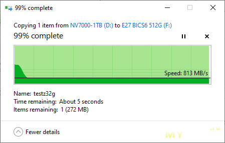 копирование больших файлов, тоже без кеша и с кешем, ~700/810MB/s соответственно:![]() | ![]() |