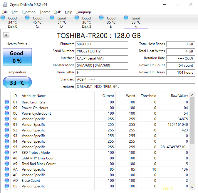 0xF5: 0x00 0x00 0x0000 0x0000 0x0201 - Max Erase Count