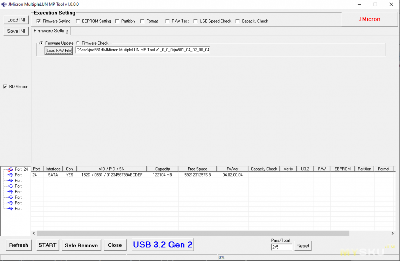 и наоборот, только настройки не трогая прошивку.Для открытия редактирования настроек надо поставить галочку «rd version» и ввести пароль «jmicron».