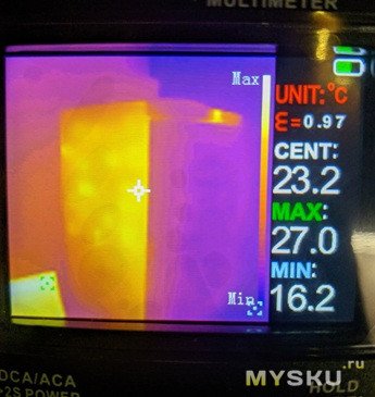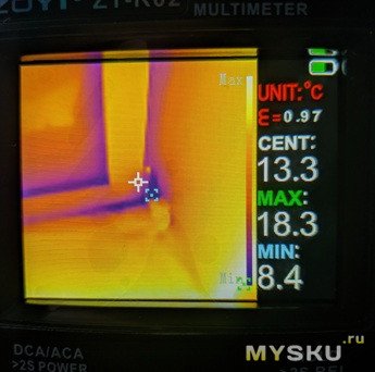 Устройство мне понравилось. Для меня такой формат: «2 в 1» стал интересным и достаточно необычным открытием, он достаточно компактный и универсальный. Тепловизором, конечно, наигрался вдоволь. Безусловно я понимаю, что это не промышленный тепловизор, он к слову на это звание и не претендует и цена у него соответствующая. Прибор рассчитан на массового потребителя и думаю, он станет отличным подспорьем для тех, кто занимается электрикой. Дисплей не большой, но в то же время изображение, выводимое на него — чёткое и яркое, все метрики хорошо читаемы. Вывод изображения с тепловизионной камеры — в режиме реального времени (25 кадров в секунду). Иногда он уходит в несколько секундную паузу с надписью «калибровка». Здорово, что индустрия не стоит на месте и производители представляют универсальные помощники, вроде этого!