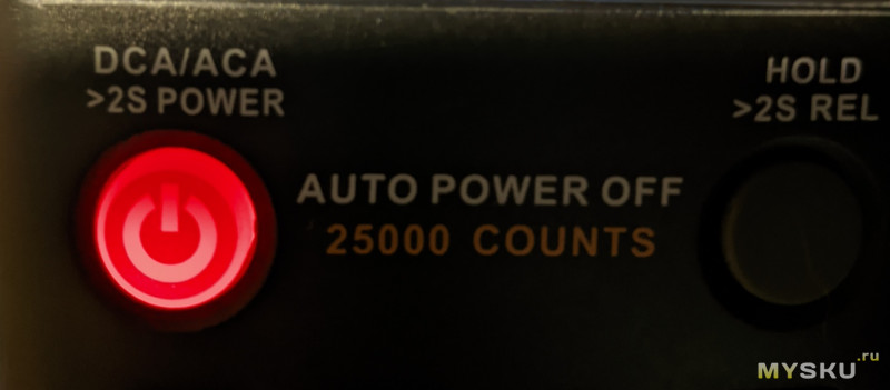 Зажатие правой красной кнопки переводит прибор в режим измерения тока.