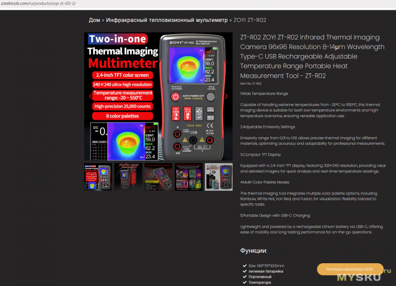 Инфракрасный тепловизионный мультиметр ZOYI ZT-R02
