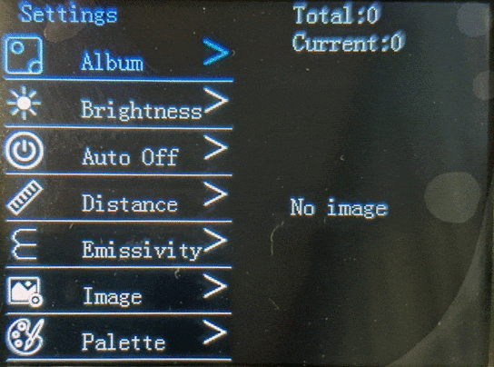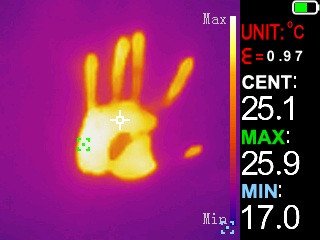 - Цветовые палитры: White Hot (Горячий белый), Black Hot (Горячий черный), Blue (Синий), Iron Red (Железный красный), Color (Цветной), Red Hot (Горячий красный), Fusion (Слияние), Rainbow (Радуга).