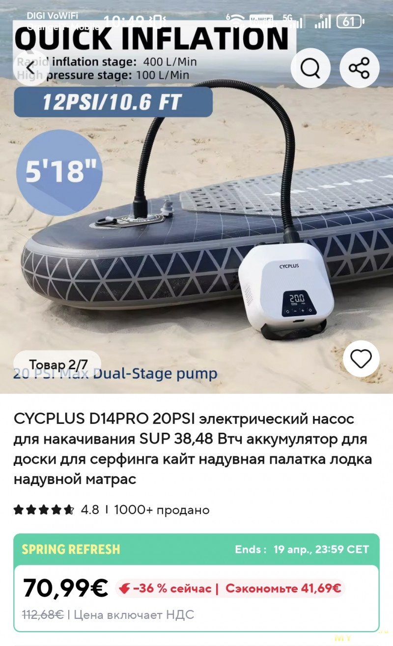 Мой вердикт: для одинокого туриста или двух обычных сапов (350см) без машины неплохой вариант. Смазка, уплотнения и подшипники в нужных местах присутствуют. Немного переживаю за аккумуляторы и мне высказали что такая емкость мала, думаю можно будет поменять на 4*21700, увеличив емкость вдвое. Если имеется автомобиль, то можно рассматривать и другие варианты из таблички, они сейчас тоже идут дешевле чем летом. Также способен накачивать и другие изделия в походных условиях, трудиться повербанком, но для матрасов низкого давления тут недавно уже обозревали микронасос с фонариком и вентилятором, но для сапа микронасос хорош только для накачки объема, а не давления, что занимает основную часть времени. С экспресс доставкой насос добрался за 4 дня в Москву. Механический насос разве что допускает меньшую бережливость, я вожу его прямо на борту и его окатывает водой.