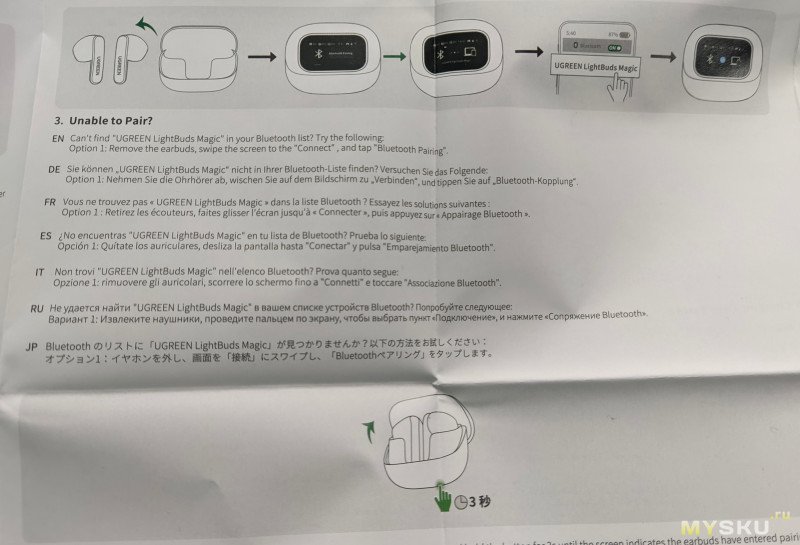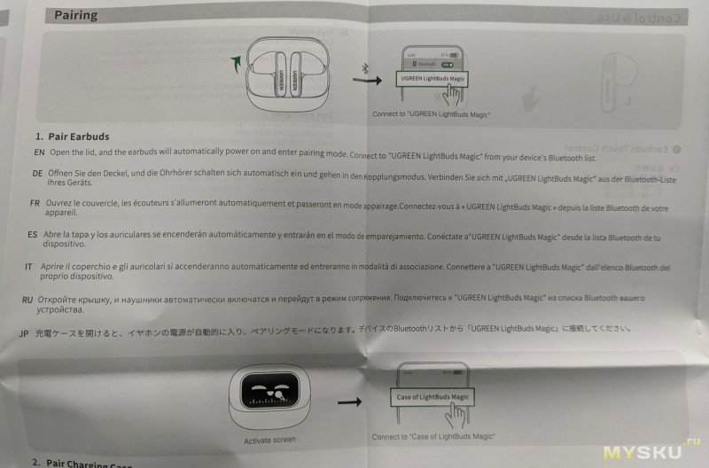 с обратной стороны экрана вся необходимая информация про гарнитуру: