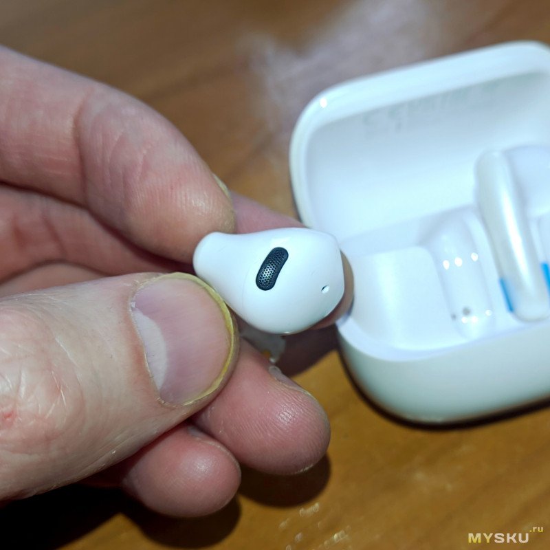 Взять наушники из кейса просто, они компактные и лёгкие, но так как это вкладыши, то подбор и примерка перед покупкой обязательны… в моём ухе такие вообще не держаться от природы, но если подойдут, то выглядеть будут ~ так