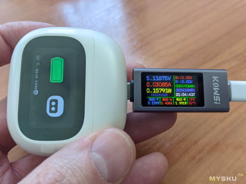 Сам кейс после полного разряда зарядился за 2ч и мизер не дотянул до 500мАч
