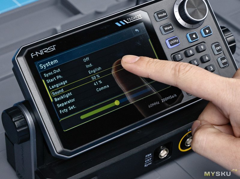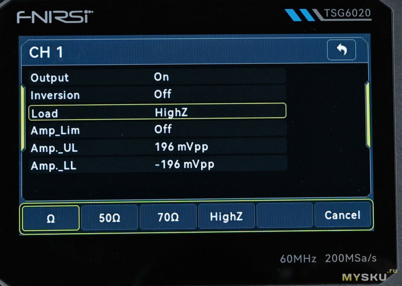 Так же FNIRSI TSG6020 имеет встроенный 7-разрядный частотомер (100 мГц–100 МГц), стробированный выход, защита от замыкания на землю, изоляцию каналов.