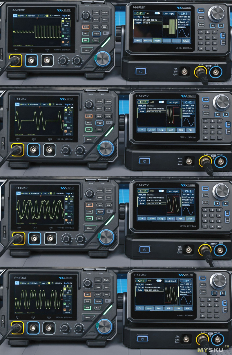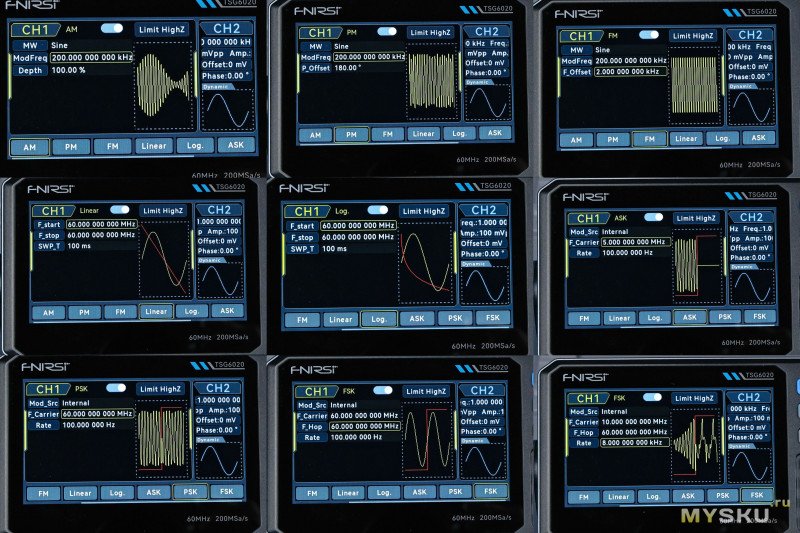 Так же FNIRSI TSG6020 имеет встроенный 7-разрядный частотомер (100 мГц–100 МГц), стробированный выход, защита от замыкания на землю, изоляцию каналов.FNIRSI TSGХХ20 — функциональный двухканальный генератор сигналов, сочетающий высокую частоту (30/60 МГц), разрешение и набор технологий для точного воспроизведения сигналов. Он подходит как для профессионального использования в R&D и тестировании, так и для образовательных целей. Остальное увидим в пользовательских обзорах.