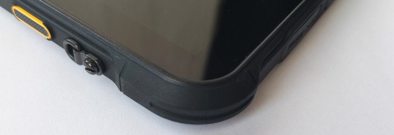 Сверху планшета расположены ушки для крепления ремешка, которые можно отвинтить и дополнительная кнопка, на которую можно назначить различные действия, вроде запуска приложений или включения фонарика, камеры и прочего.