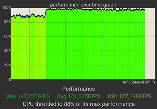 Планшет не греется под нагрузкой, но имеется небольшой тротлинг. CPU Throttling Test показал следующие результаты.