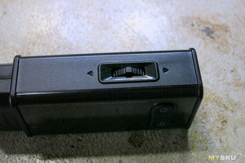 На верхней части переключатель типа качелька с нажимом.