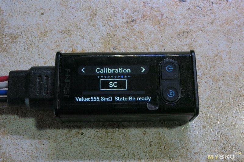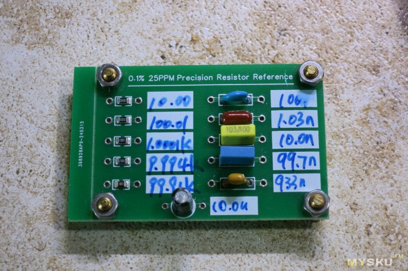 Калибровка есть по 9 точкам — короткое замыкание щупов (SC на экране) и по 8 номиналам резисторов, которые есть на калибровочной пластине. То есть 1, 10, 100, 1К, 10К, 100К, 1М, 10М.