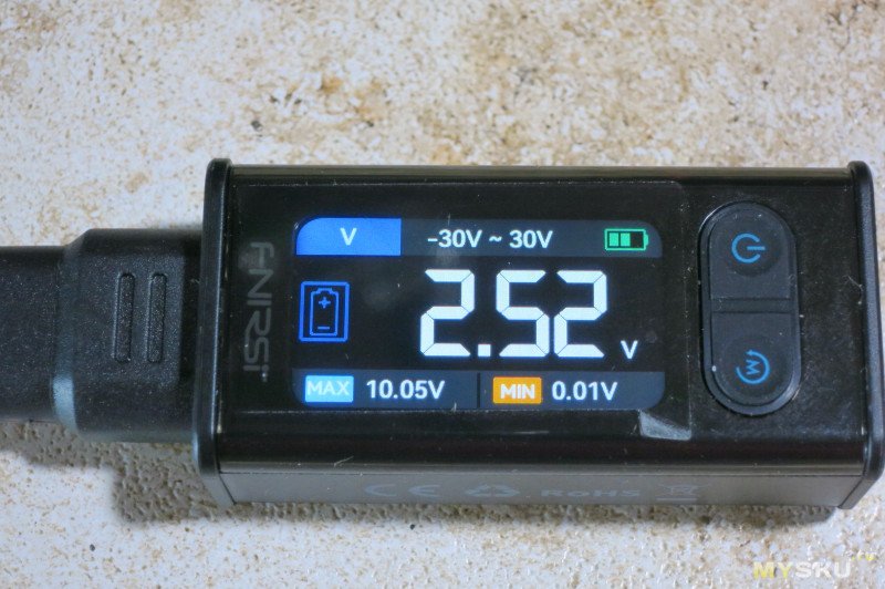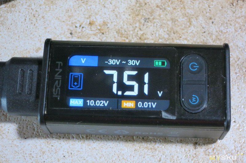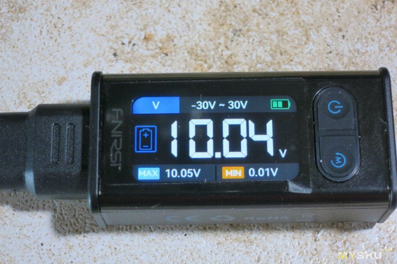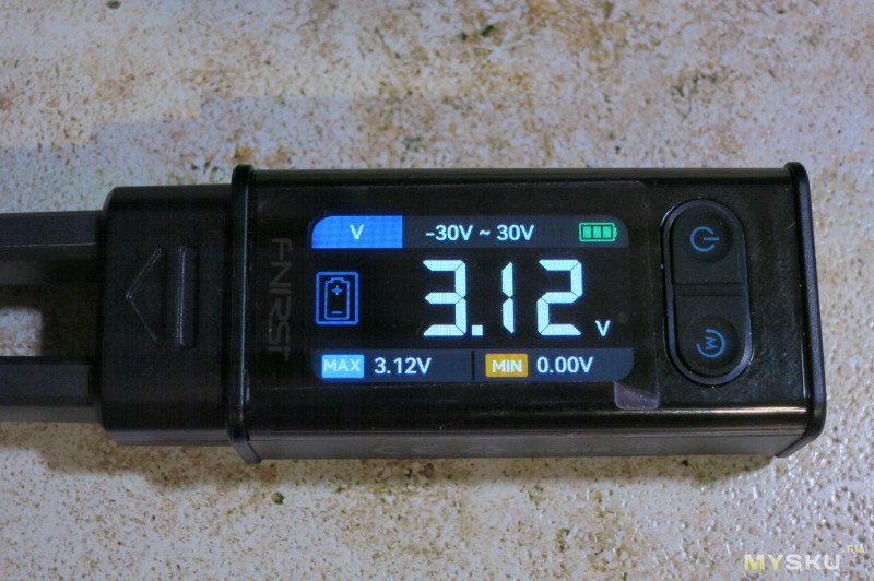 Проверка напряжения. В нижней части показывает минимальное и максимальное измеренное напряжение.