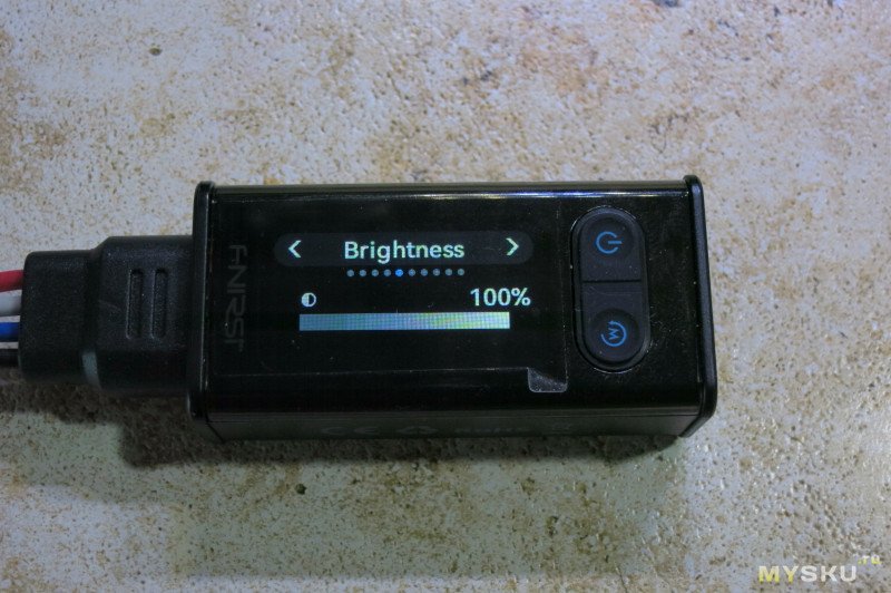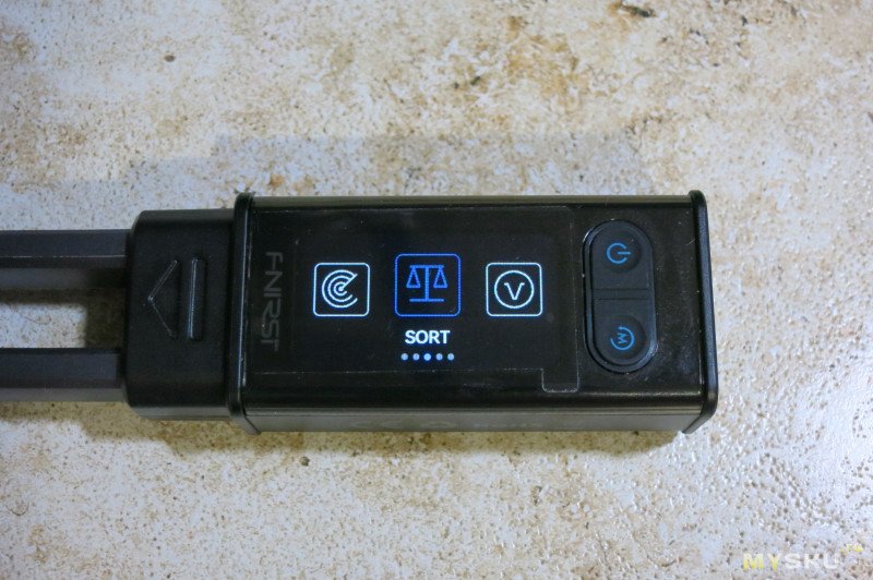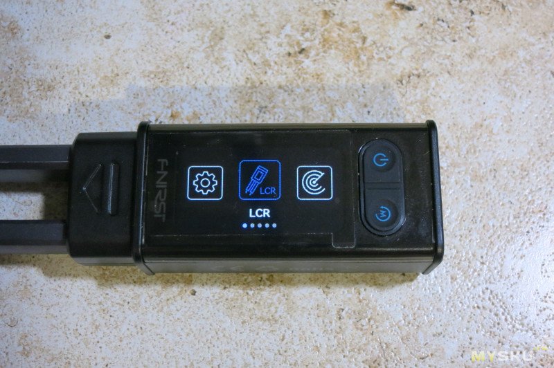 Прибор управляется двумя кнопками на передней части и джойстиком с нажатием в верхней части.Включение и выключение удержанием кнопки питания на передней панели.