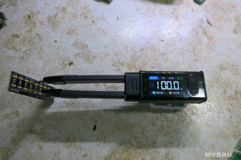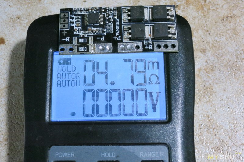 Проверил шунт на плате BMS — 4,8мОм, пинцет от фнирси показал скачущие показания 3,5-5 мОм.